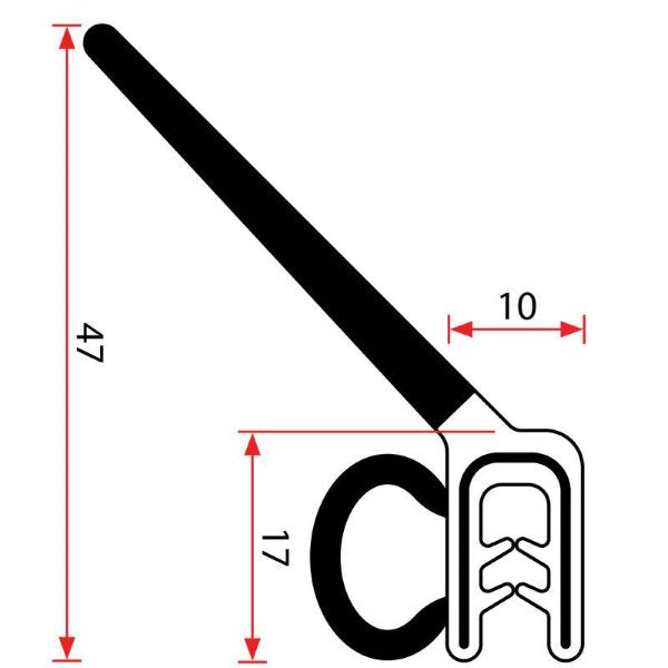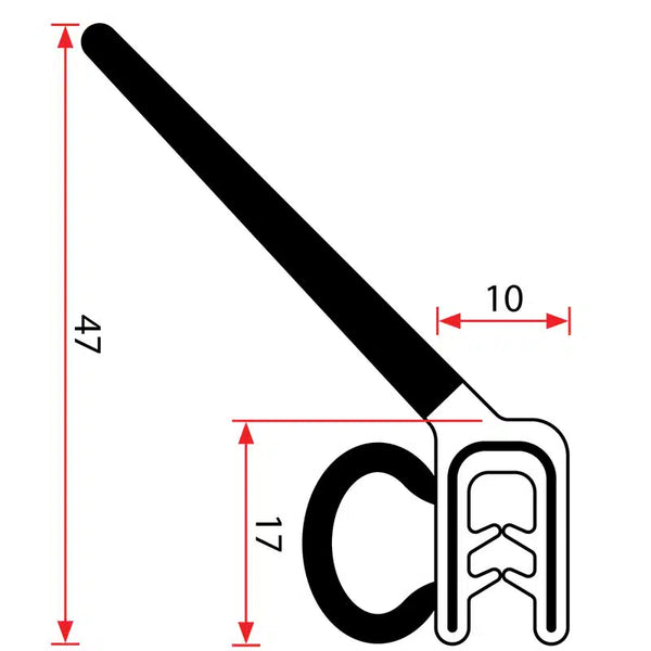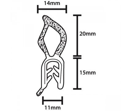 Pinchweld and Seal Side EPDM Large Tail 17mm x 16mm Per Metre 10 Metres 25 Metres 50 Meters Pinchweld and Seal Side EPDM Large Tail 17mm x 16mm Per Metre 10 Metres 25 Metres 50 Meters