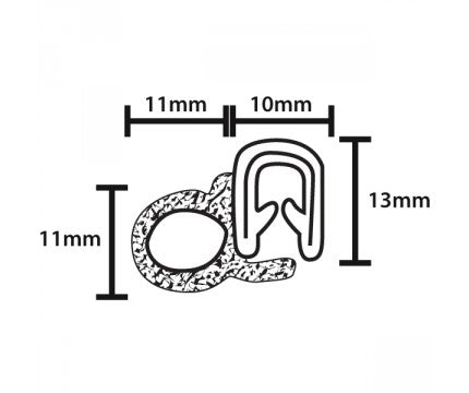 Pinchweld Door Seal with Top Bulb 11mm x 4.5mm Per Metre 10 Metres 25 Metres 50 Metres Size Per Metre 10 Metres 25 Metres 50 Metres