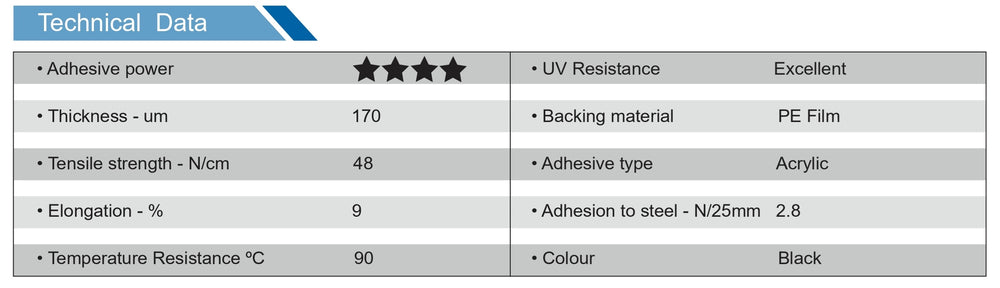UV resistant black polyethylene repair tape coated with acrylic adhesive ideal for protecting joists to prolong the lifespan and vapour sealing applications.