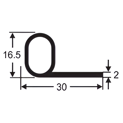 Rubber EPDM P Section 30mm x 16.5mm x 2mm (Per Metre)