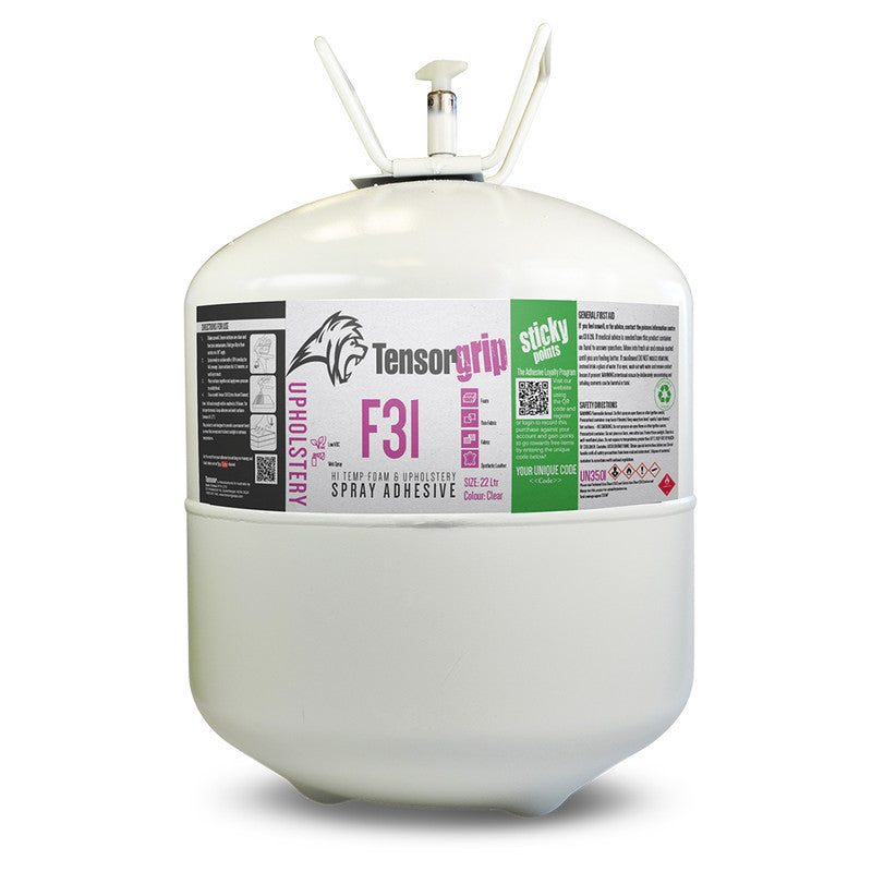Tensorgrip® F31 is a high performance spray adhesive developed for demanding foam, fabric, leather and upholstery applications. Its tough curing properties and high temperature resistance give ultra-strong bond adhesion when working in high demand, bespoke upholstery applications, ensuring longevity and excellent, integral bond results.
